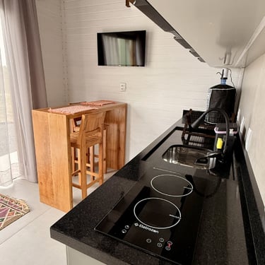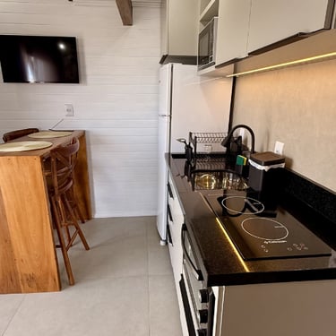 Nossas cozinhas completas garantem mais praticidade para o preparo das refeições. Aproveite também nosso redário na área externa para aproveitar o dia ou apreciar a lua.